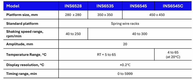 • LCD microprocessor controller for temperature and shaking speed with timing function.