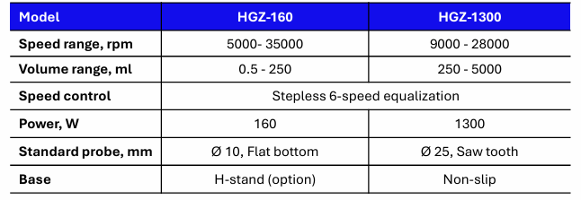 • Powerful motor for disruption, emulsion or homogenization