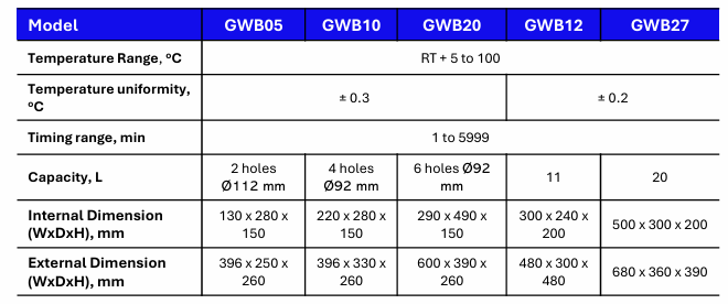 • Automatic overtemperature cut off in case of low water level with visible and audible alarm