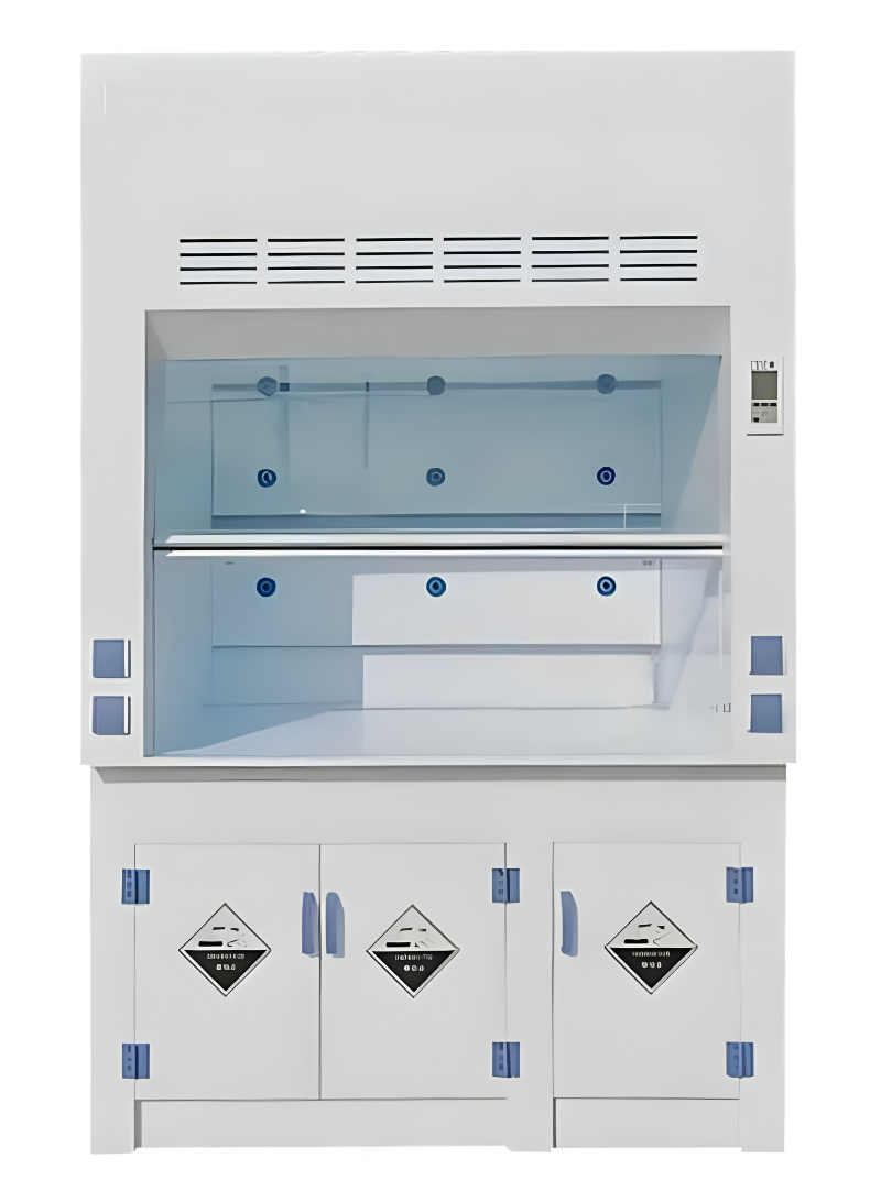 A fume hood is a primary engineering control commonly used in laboratories to limit exposure to hazardous chemical vapors, gases, and particulate matter. It operates by maintaining a negative pressure environment within the enclosure, drawing air away from the user and either exhausting it to the outside or filtering it through specialized systems. Properly designed and maintained fume hoods reduce inhalation risks, minimize chemical exposure, and contribute to overall laboratory safety. They are widely employed in chemical, pharmaceutical, and academic research laboratories as a standard containment device.